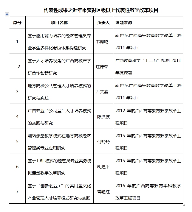 每年开设的实训项目涉及全校8个专业3000余名经济管理类和其它专业本科生、研究生以及社会培训学员,年实验人时数约300学时。员工在2010年-2013年发表发21篇论文。员工在2015年全国老员工企业经营模拟大赛中获奖,并不断在学创杯全国老员工创业综合模拟大赛、全国“互联网+”老员工创新创业大赛和2015云梦想广西校园商务精英大赛中初步崭露头角和取得优异成绩。