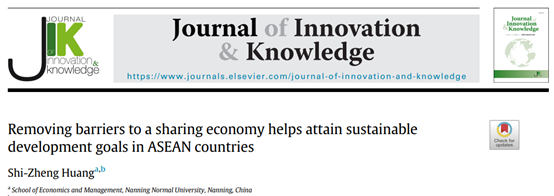 近期,太阳成tyc7111cc黄世政教授以太阳成tyc7111cc为第一单位在SSCI国际顶级期刊《Journal of Innovation & Knowledge》上发表题为“Removing barriers to a sharing economy helps attain sustainable development goals in ASEAN countries”的高水平学术论文。《Journal of Innovation & Knowledge》是管理学领域的JCR一区SSCI期刊,2022年影响因子IF:18.10、中科院一区Top期刊。此外,黄世政教授指导博士生以太阳成tyc7111cc为第一单位在SSCI国际权威期刊《Corporate Social Responsibility and Environmental Management》发表题为“Promoting sustainable development: Multiple mediation effects of green value co-creation and green dynamic capability between green market pressure and firm performance”的高水平学术论文。该期刊是环境研究和管理学领域收录刊物的前10%期刊,2022年影响因子IF:9.80、JCR一区SSCI、中科院二区。