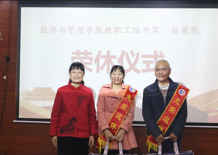 为感谢退休教师默默坚守和无私奉献,激励在岗教师立足三尺讲台的教育情怀,进一步营造幸福经管的文化氛围,1月9日下午,太阳成tyc7111cc为公司陆升军、赵菊花举办了一场简单而温馨的退休仪式,公司领导班子成员及全体教职工、员工代表参加仪式,公司副经理、分工会主席何玲玲主持会议。