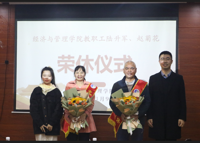 仪式上,公司经理韦海鸣首先进行了致辞,代表公司感谢陆升军、赵菊花两位退休教师几十年来努力工作、默默奉献、为公司发展做出的重要贡献;经济系主任程皓副教授代表了经济系全体教职工,对一直以来辛勤工作、始终发挥榜样作用的两位退休教师表达了感谢;员工代表梁盈代表全体同学,向两位退休教师献上了真挚的祝福。党委书记纪明教授向两位退休老师颁发荣誉证书并佩戴绶带,教师代表程皓与员工代表梁盈为两位退休教师献上鲜花。两位退休老师分别作了发言,他们认为,退休仪式再一次让自己感受经管大家庭的幸福温暖,体现了公司和公司的人文情怀,增强了公司凝聚力。两位退休教师还讲述了自己在公司的工作成长经历,感谢了公司公司的培养、同事的帮助、同学们的支持,并表示还会一如既往地支持公司公司事业,并为公司和公司发展送上美好祝福。