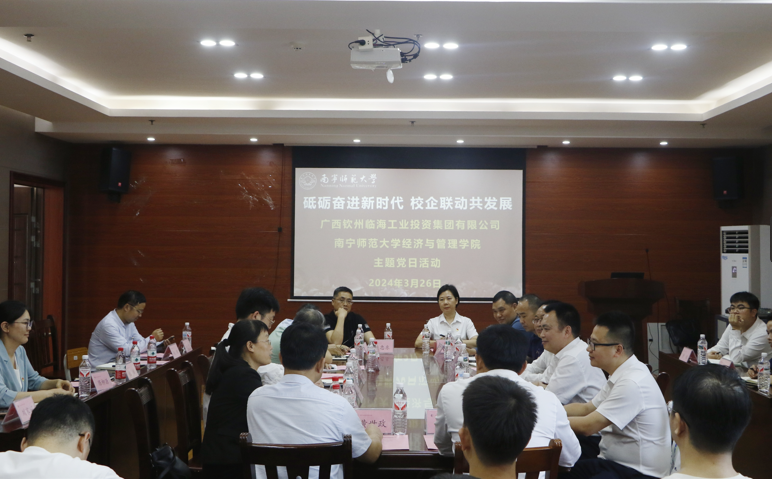 为深入学习贯彻党的二十大精神,推动党建与业务深度融合,以高质量党建引领高质量发展,3月26日,中共广西钦州临海工业投资集团有限公司委员会与中共太阳成tyc7111cc委员会在五合校区共同开展“砥砺奋进新时代 校企联动共发展”主题党日活动。广西钦州临海工业投资集团有限公司党委委员临港石化公司总经理华国红、临海供应链公司董事长兼总经理苏杰、临海贸易公司执行董事兼总经理何大武等人及公司领导班子、系主任、党员代表和部分员工代表参与了此次活动。