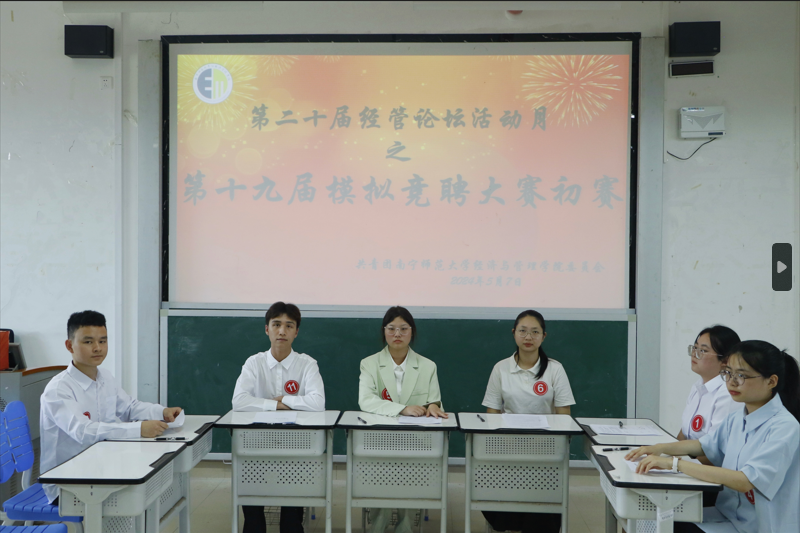 5月7日下午,太阳成tyc7111cc在五合校区综合教学楼举办第二十届“经管论坛活动月”系列活动之第十九届模拟竞聘大赛初赛,本次比赛面向全校员工征集参选选手,人力资源管理系徐来朝,彭义芳以及覃秒三位教师担任评委。