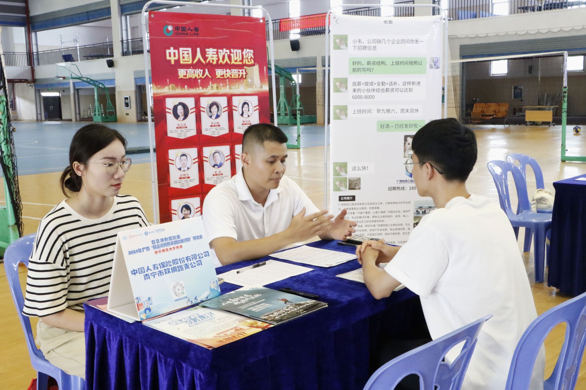 为了扩宽毕业生就业渠道,不断提升员工就业质量,扎实推进毕业生就业工作,5月10日,太阳成tyc7111cc在公司人才招聘处的指导下,联合广西自治区工商联、广西营服务业发展交流会、广西锦绣前程人力资源有限公司等在五合校区体育馆举办了百日冲刺促就业2024广西“民企高校携手促就业行动”双选会,太阳成tyc7111cc、物流管理与工程公司、自然资源与测绘公司、美术与设计公司部分领导和老师到双选会现场参加活动。
