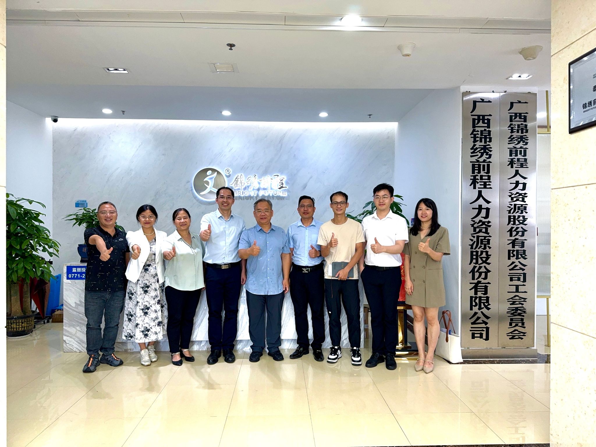 在广西锦绣前程人力资源股份有限公司,公司党委书记韦海鸣、党委副书记何一飞,物流管理与工程公司党委书记陈兵、党委副书记黄宇,旅游与文化公司党委副书记黄珍等联合开展了访企拓岗活动,与公司优秀员工、公司副总经理、董事会秘书黄宗勇等开展了座谈会,双方就经济社会对于人才需求的变化趋势进行了探讨,就进一步加强党建领域合作、老员工就业能力提升等进行交流。双方还聚焦2024届毕业生就业冲刺期,就如何结合公司毕业生专业背景、就业意向等,发挥公司业务背景、资源优势助力公司毕业生就业进行了深入研究。