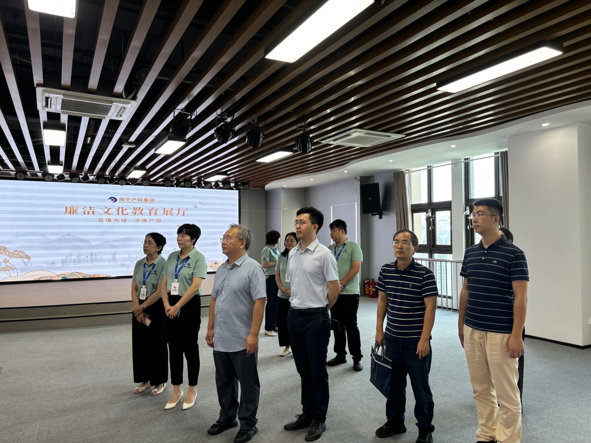 在南宁产投统一投资管理有限责任公司,韦海鸣书记等与公司董事长、公司优秀员工尤志婷及公司领导、部分部门领导举行了座谈会,调研组认真了解企业发展概况、用人需求,介绍了公司毕业生资源,分析了公司毕业生与公司需求匹配度,并就发挥公司资源帮扶公司2024届毕业生就业进行了深入探讨。双方还就进一步加强党建领域交流,优化员工实习、产学研合作等进行了交流。会后,双方举行实习实训基地授牌仪式,调研组还参观了南宁产投集团廉政文化教育展。公司党委副书记何一飞、公司副经理丘兆逸、公司教师程皓和辅导员孙国时、李宏晨参加了活动。