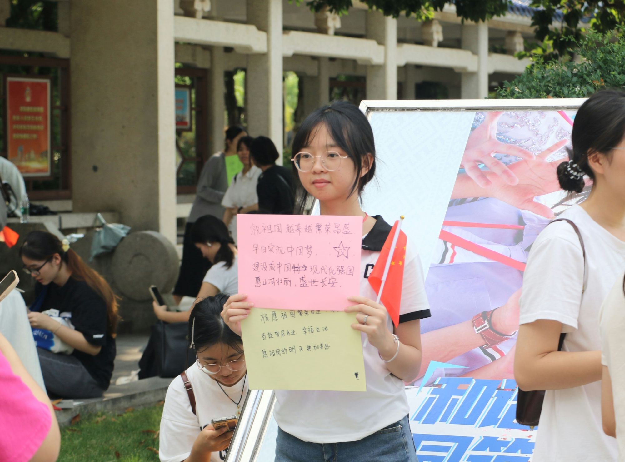 活动中,工作人员对公司志愿者们进行现场点名签到。志愿者们共同写下对祖国母亲的祝福语后发到社交平台上,在刘老师的带领下合唱《我和我的祖国》。紧接着,团委实践部成员组织志愿者们开展爱国知识竞赛,志愿者们积极参与,踊跃抢答。随后,志愿者们有序地进入南湖公园烈士纪念馆,通过参观馆内图文和红色纪念物,了解革命烈士韦拔群和李明瑞的故事。最后,志愿者们团结协作,在南湖公园清扫落叶,收拾垃圾,让南湖公园变得更加清新美丽。