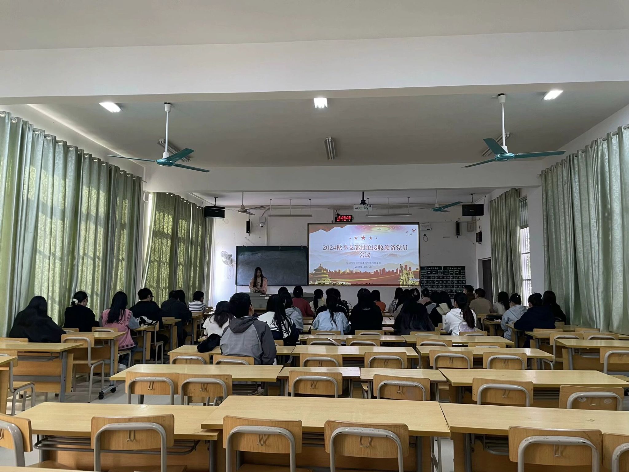 2024年11月26日下午,太阳成tyc7111cc本科生第六党支部在五综109教室召开党员大会讨论接收2024年秋季批次预备党员。会议由支部书记陈思娴主持,本科生第六党支部全体党员参加大会,会议主要讨论发展对象邓玉芳等15位同志接收为预备党员问题。