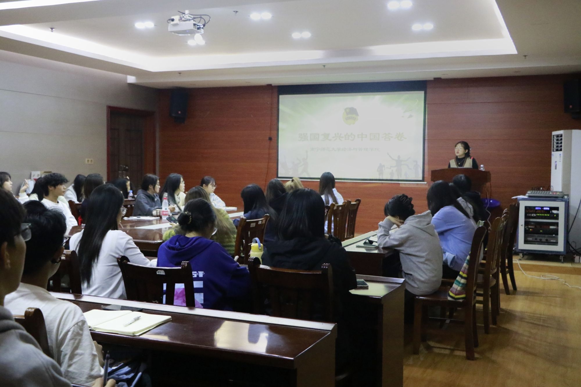 刘家瑶老师以“强国复兴的中国答卷”为题,带领同学们首先回顾了中国共产党一百年来团结带领中国人民实现中华民族伟大复兴的艰辛历程,并强调中国式现代化是强国建设、民族复兴的唯一正确道路。接着,她详细阐述了中国式现代化的具体内涵,结合具体案例进行生动讲解。最后,她鼓励同学们坚定信念,坚持学习党的科学理论知识,砥砺奋斗,将理论学习与生活实践融合,敢于创新,在每次大考中不断追求进步。培训过程中,同学们与老师积极互动,现场学习氛围浓厚。