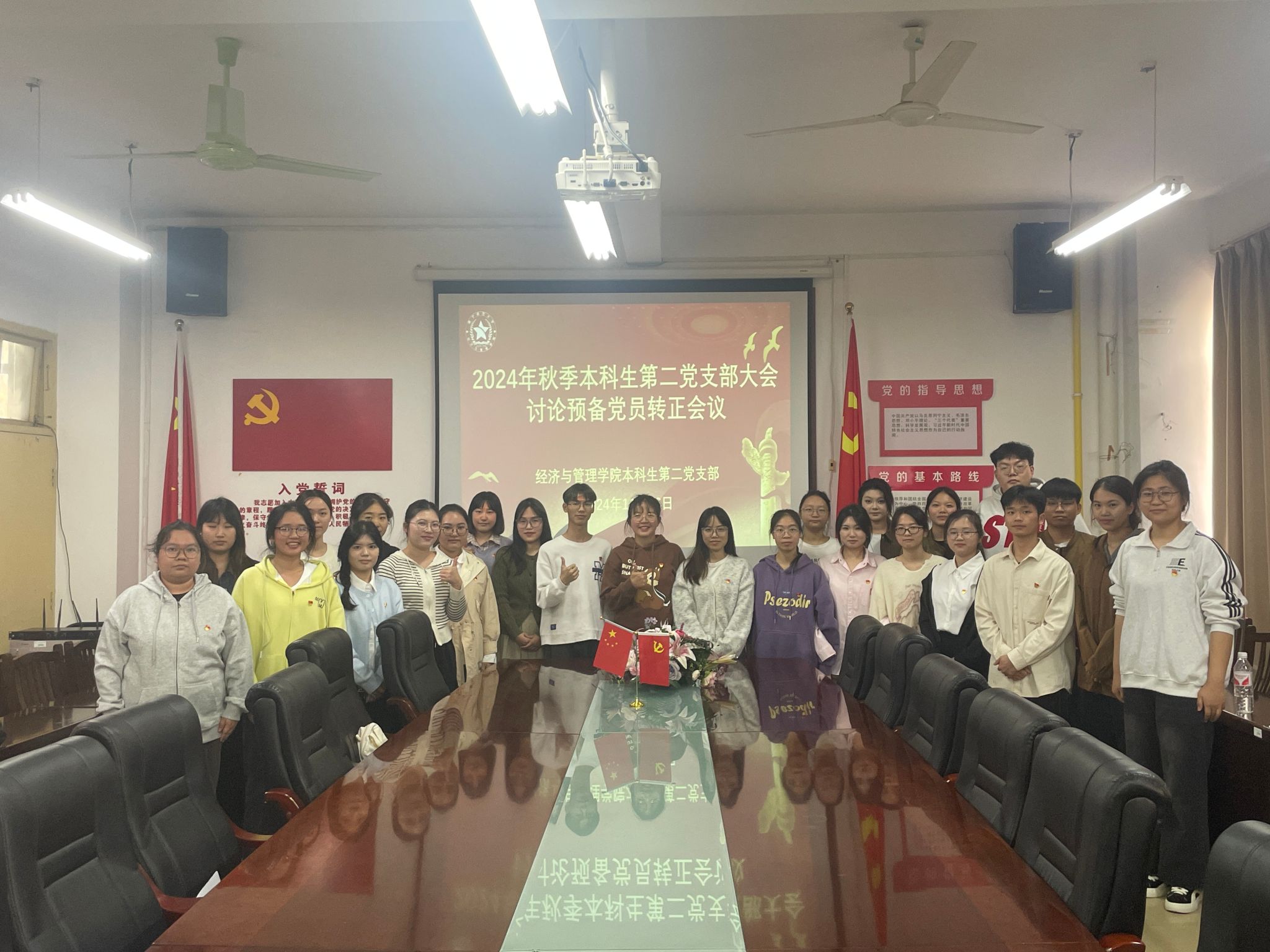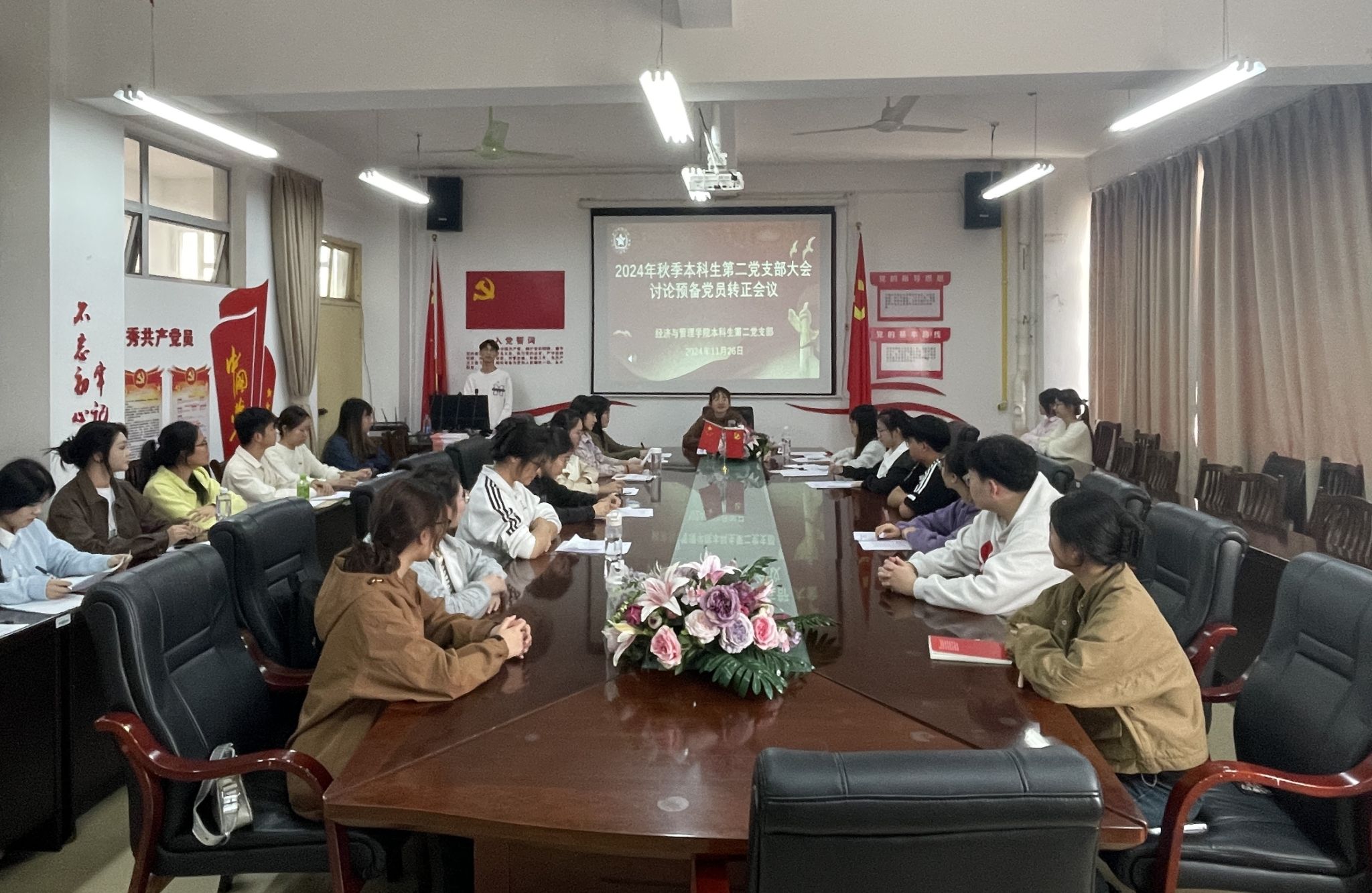11月26日下午,太阳成tyc7111cc本科生第二党支部于明秀校区召开2024年下半年预备党员转正大会,讨论陈铭涵等5名同志的转正情况,支部全体党员参加大会,会议由支部副书记陆柳政主持。