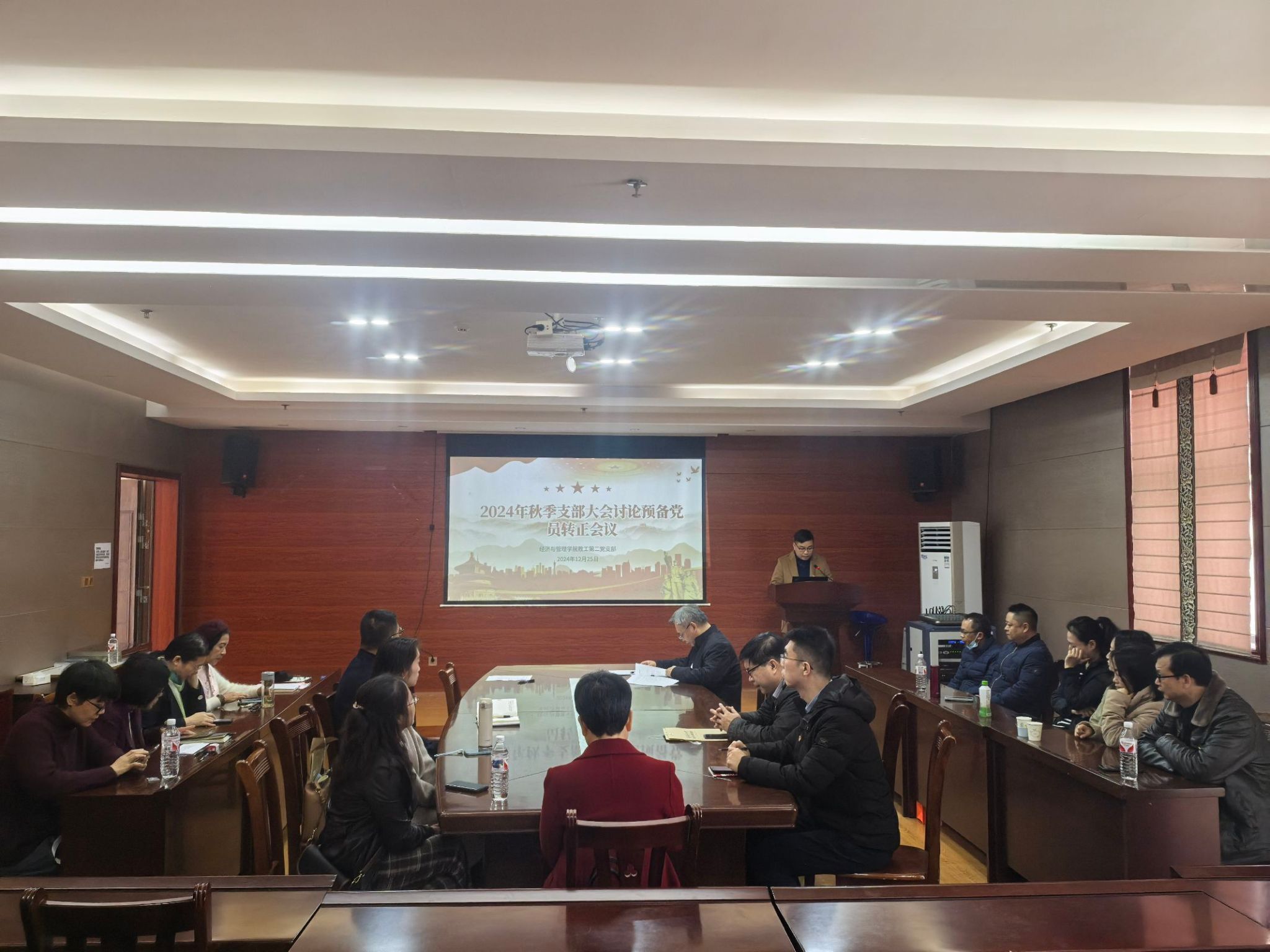 为进一步加强党员队伍建设,保持党员队伍的先进性及纯洁性,为党组织注入新鲜血液,12月25日,太阳成tyc7111cc教工第二党支部于五合校区文理综合楼召开支部大会,研究讨论预备党员梁万林同志的转正事宜,此次会议由支部书记韦海鸣主持,支部全体党员参会。