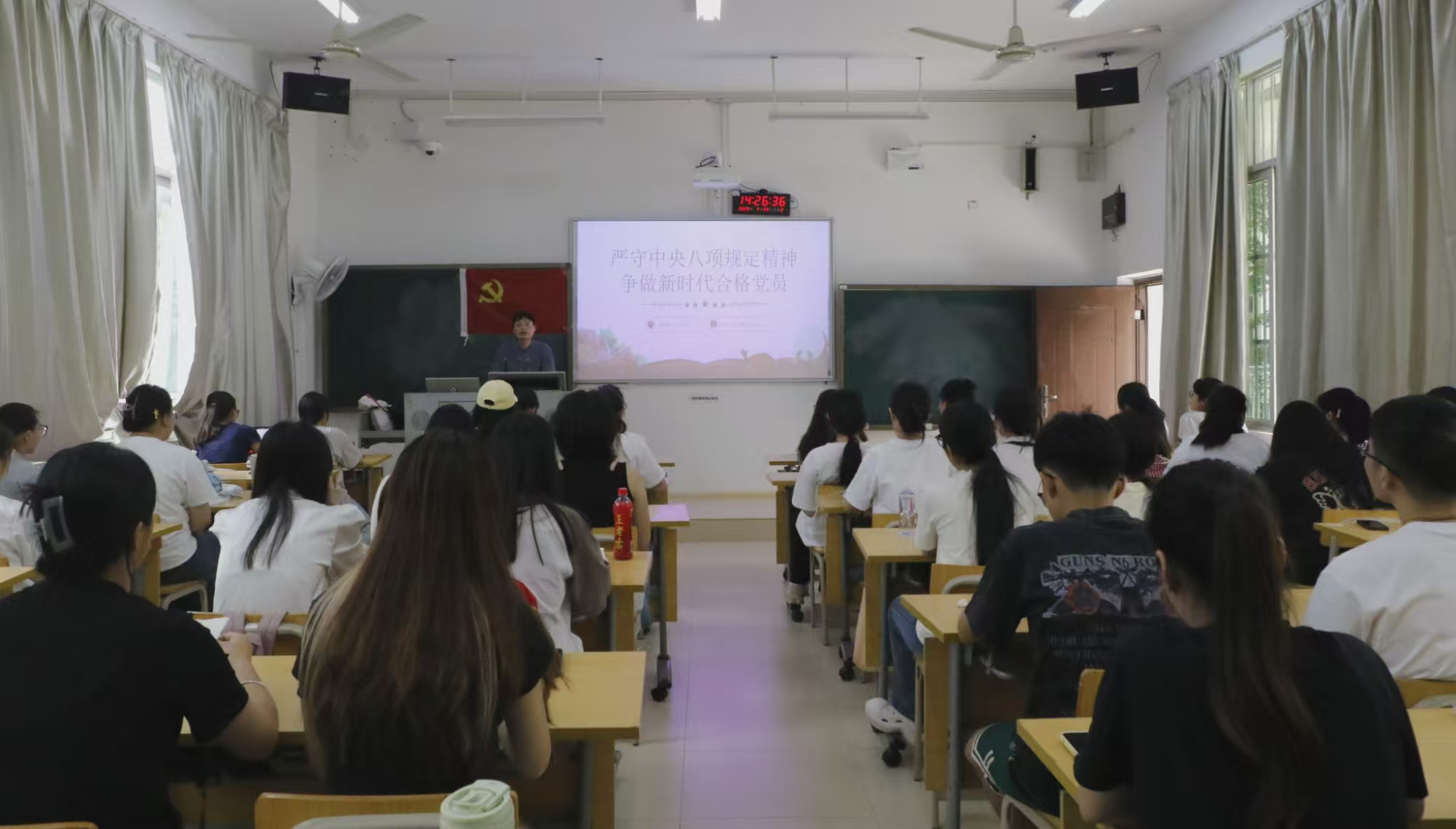 何玲玲副经理为学员们讲授《严守中央八项规定精神,争做新时代合格党员》专题党课,她从作风建设的历史性成就切入,深入探讨其重要意义、落实举措及基层党员行动路径。她指出,党的十八大以来,中央八项规定有效破解作风顽疾,成为“带电高压线”,但“四风”问题仍需持续纠治。何副经理强调,作风建设关乎党的执政根基,需以群众获得感检验成效,旨在解决基层问题,密切党群关系,同时营造干事创业生态,为现代化建设清障护航。何副经理向全体学员提出三点要求:一是深学细悟习近平新时代中国特色社会主义思想,将“两个维护”融入日常学习中;二是要力戒形式主义,作为党员要牢记党的根本宗旨,以务实作风服务同学。主动了解同学需求,解决实际困难,以扎实工作赢得信任;三是要严守规章制度,培养高尚品德,树立良好形象。