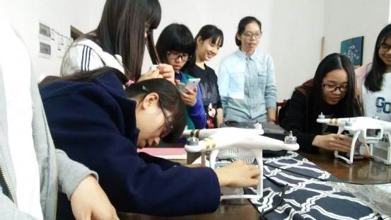 文管专业的员工在学习无人机操作