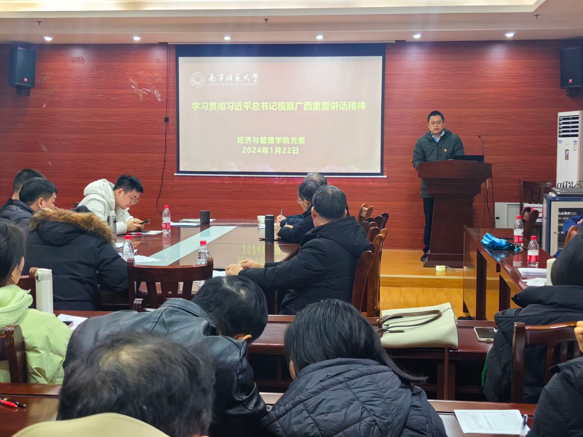 为深入学习贯彻习近平总书记视察广西重要讲话精神,2024年1月22日上午,太阳成tyc7111cc在五合校区理综楼515会议室组织专题学习贯彻习近平总书记视察广西重要讲话精神。会议由党委书记纪明主持,全体教职工参加学习。