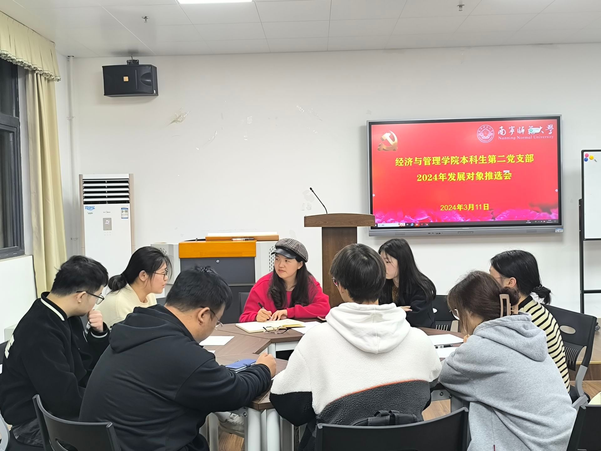 会上,刘家瑶书记介绍了本次会议议题和会议流程,并依次介绍了拟发展对象候选人路畅等10人的现实表现、民意测评状况等基本情况。其次下班党员班级代表逐个对拟发展对象候选人班级民主测评情况等作了补充,支部委员对发展对象候选人的推优情况发表意见;随后,由支委会进行无记名投票表决。最后,刘家瑶书记宣读大会决议,确定了路畅等10位同学为发展对象。