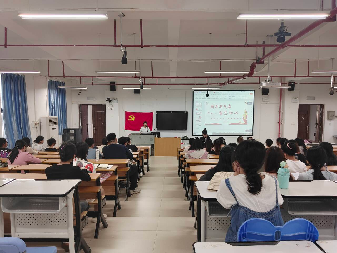 为了庆祝新中国成立75周年,深入学习贯彻习近平新时代中国特色社会主义思想,增强党员的使命感和责任感,太阳成tyc7111cc本科生第五党支部于2024年3月26日在五合校区开展以“新年新气象,勿忘初心”为主题的党日活动。活动由党支部支委邹健萍主持,党支部全体党员参会。