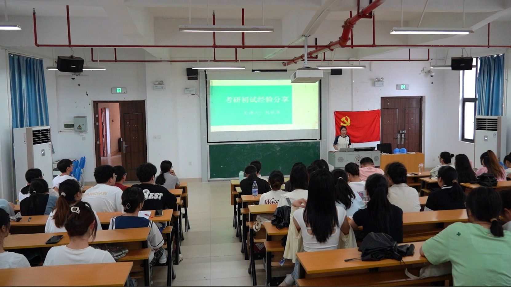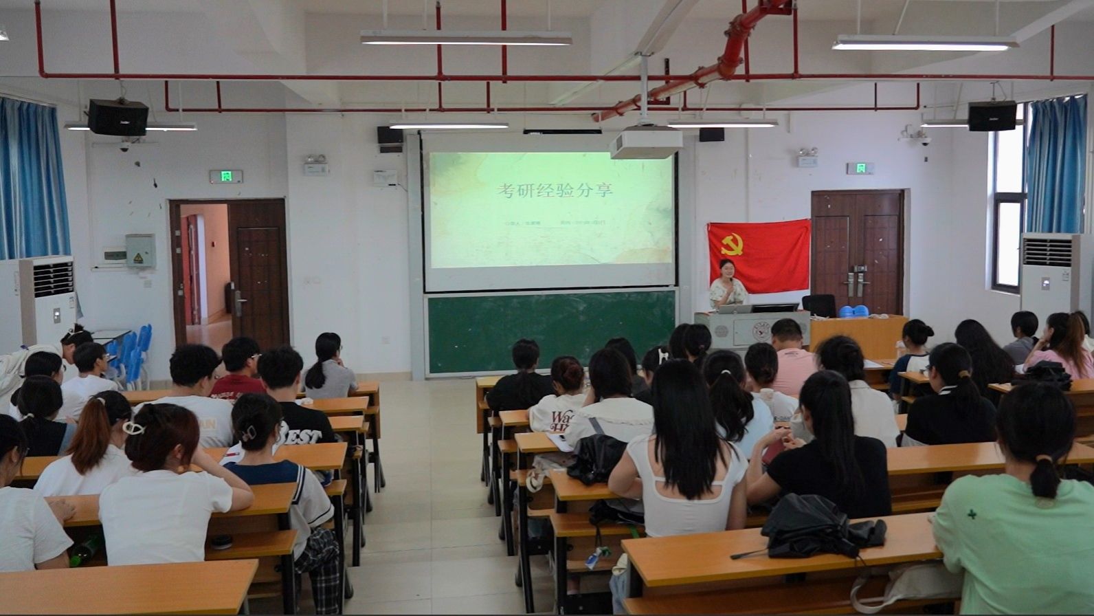 张美琳同志主要从时间安排、课程选择以及学习方法等方面向大家作分享。她表示,考研学子要根据自身实际情况,找准自己的学习节奏,不要盲目地学习。同时,她还向大家推荐了一些备考资料和学习资源,提供给大家更多的选择范围。刘秋萍同志主要从自身经历去向大家作分享。她认为,考研是一场持久战,大家在备考过程中难免会遇到挫折和困难,但要学会放平心态。她强调,不要过于勉强自己,要劳逸结合,以健康的身体和心理素质从容备考。最后,刘家瑶老师作总结发言。她表示,两位同志的分享非常全面,深受启发,同时她也以自身的学习经历鼓励大家积极备考,希望大家坚定自己的信念,勇敢面对挑战。