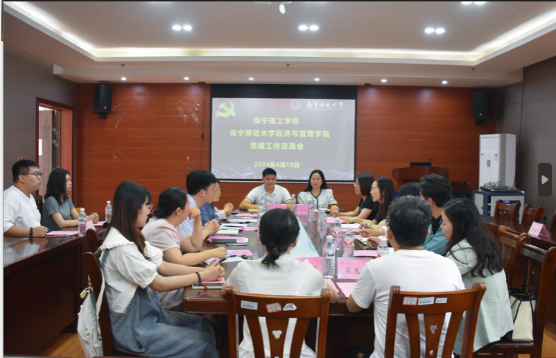 公司党委副书记何一飞主持会议,他对南宁理工公司的到来表示热烈欢迎。公司副经理、教工第一党支部书记何玲玲介绍了本支部获得首批新时代广西高校“双带头人”教师党支部书记工作室培育创建单位的工作经验,着重介绍了支部在“领航经管”项目上发挥的思政育人的辐射作用。本科生第二党支部书记刘家瑶介绍了本支部获得第四批“全国样板党支部”培育创建单位的工作经验,着重介绍了支部管理经验、党员教育模式、品牌活动建设等的育人成效。最后,何一飞副书记从党的创新理论学习、基层党组织建设等方面进行了总结。南宁理工公司商公司党总支书记姚顺良对太阳成tyc7111cc的大力支持和指导帮助表示衷心的感谢,对公司党建工作表示高度肯定与赞扬,双方就支部建设、党建品牌、申报经验等方面进行了深入交流。