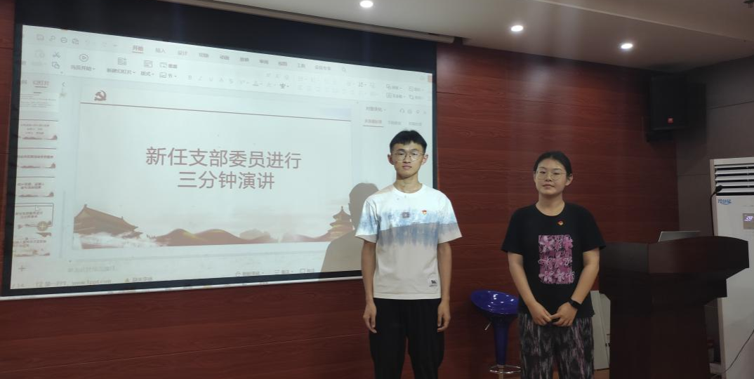 会上,党支部全体成员奏唱《义勇军进行曲》后,主持人宣读支部委员会委员名额、候选人预备人选名单以及党支部委员选举规则,并介绍监票人和计票人名单。随后,支部正式党员进行无记名投票,根据统票结果,王垚、王心妍分别当选为本科生第五党支部新一届支部委员,最后,候选人王垚、王心妍上台做表态发言。