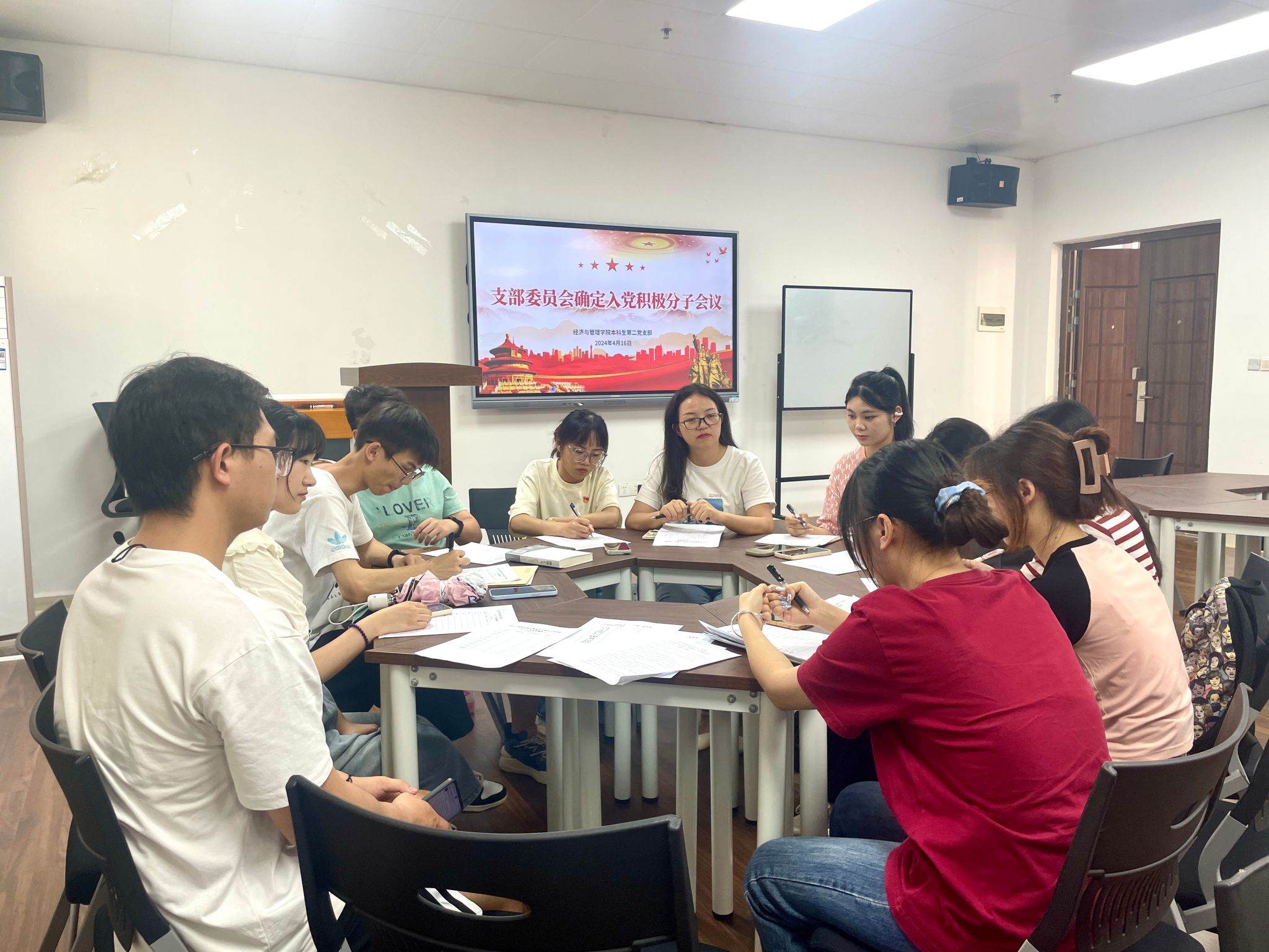 会上,支部书记刘家瑶依次对黄婷等10名入党申请人的基本情况进行了简要介绍。各班代表及党员同志从各入党申请人的入党动机、思想情况以及学习、工作和生活等方面对10名入党积极分子人选进行了逐一讨论。最后,由支部委员会逐个进行无记名投票表决,经过大会审议投票结果决定,黄婷等10名同学确定成为入党积极分子人选。