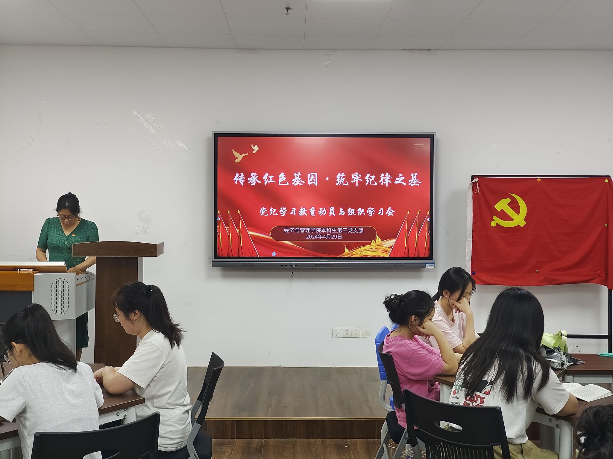 “加强纪律性,革命无不胜。”纪律严明是党的光荣传统和独特优势。为推动党组织从严抓好党的纪律建设,增强广大党员遵守纪律的自觉,以严明的纪律确保全党自觉以习近平同志为核心的党中央保持一致,统一思想、统一行动、知行知止、令行禁止,形成推动中国式现代化的强大动力和合力,教育引导党员学纪、知纪、明纪、守纪,2024年4月29日,太阳成tyc7111cc本科生第三党支部在理综504室开展党纪学习教育动员与组织学习会。本次会议由书记孙国时主持,全体在公司党员参加会议。