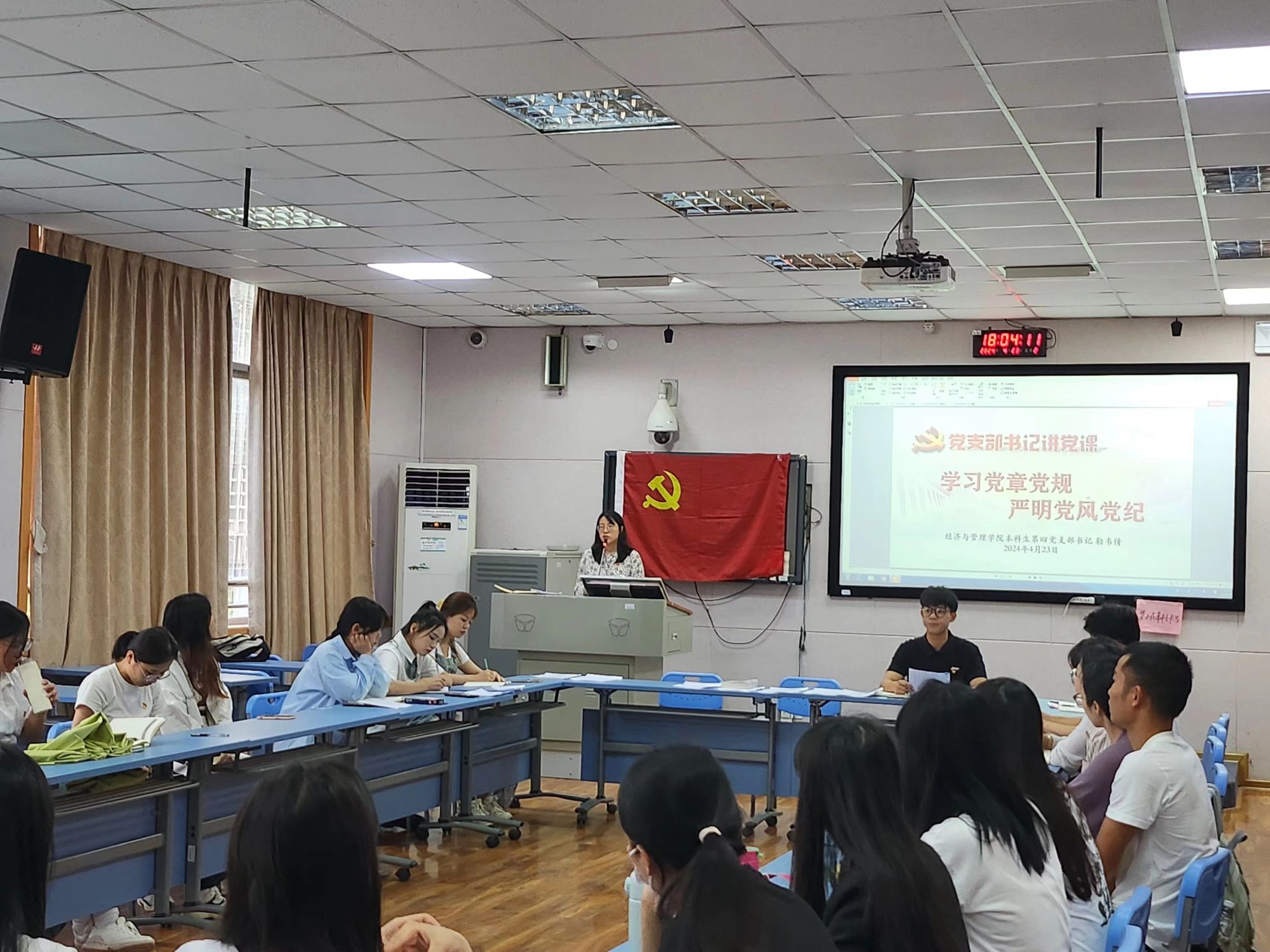 太阳成tyc7111cc本科生第四党支部于4月23日在五综511,开展了“学习党章党规,严明党风党纪”党课。