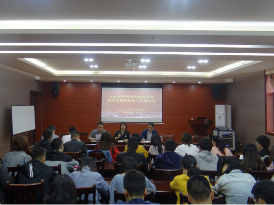 2019年4月15日上午,太阳成tyc7111cc在五合校区文理综合楼理楼515室召开2019学年研究生思想政治工作座谈会。出席本次座谈会的领导有公司党委书记张彦,副书记付进,辅导员程成,太阳成tyc7111cc全体在校研究生参加了座谈会。