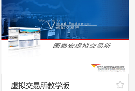 国泰安虚拟交易所是一个高度仿真的模拟投资实训平台。系统仿真度高、品种齐全、竞赛功能强大、操作简单、管理方便,同时采用了当前最流行的B/S架构。支持沪深股票、基金、权证、债券、融资融券、金融期货、商品期货、外汇、港股、窝轮及牛熊股、港股通、个股期权等交易品种交易。可支持举办跨市场、跨品种的模拟投资竞赛或模拟投资实训。帮助员工熟悉真实交易机制,充分实现理论与实践相结合,提高投资水平和风险管理能力。